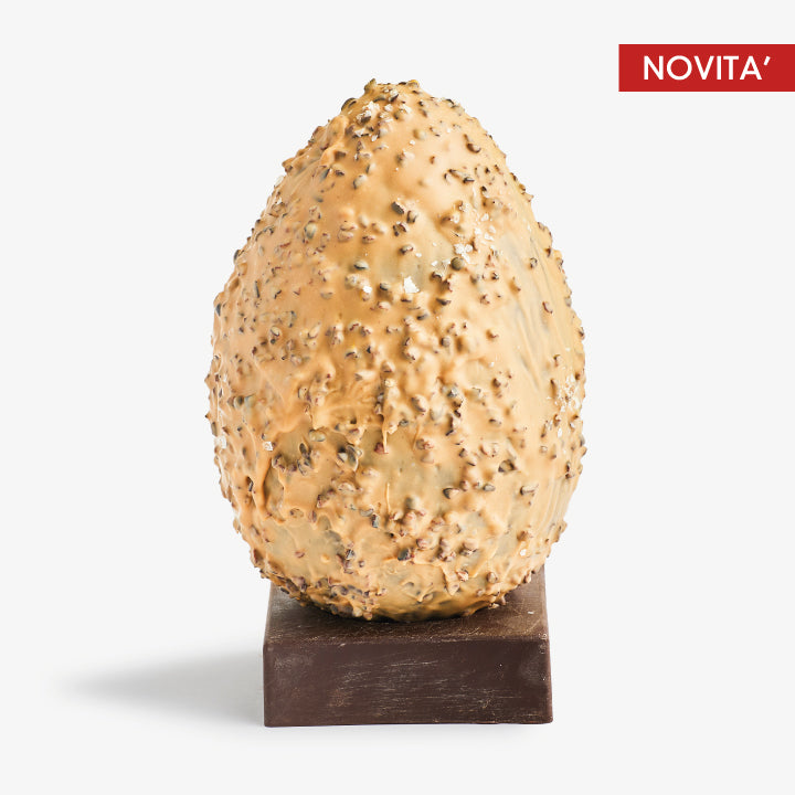 Una delle Sinfonie più dolci: la golosità del cioccolato al caramello con fave di cacao e sale, a coprire un guscio intenso di massa di cacao, celato all’interno